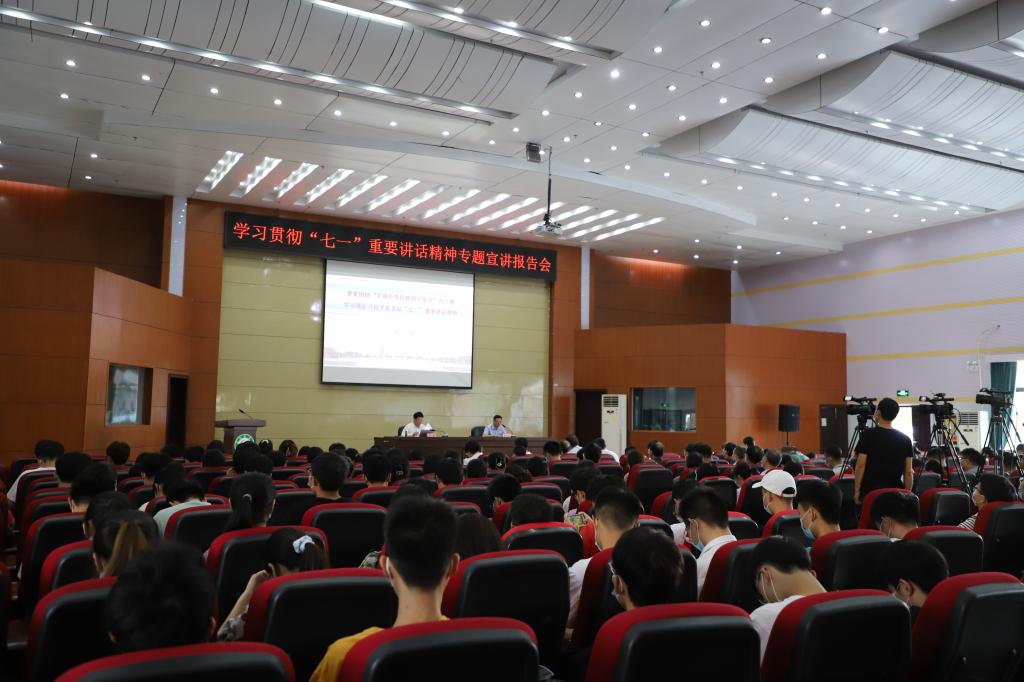 9月26日上午,我校在黄金校区举办“学习贯彻‘七一’重要讲话精神专题宣讲报告会”,邀请中共江西省委党校副校长、江西行政学院副院长杨超教授作专题宣讲报告。学校党委班子成员李恭进、张小康、曾泽鑫、陈亮、黄瑞忠、叶军明、肖树辉、彭维杰、甘雅芬、廖志平、赖传景出席报告会。学校党委副书记曾泽鑫主持报告会。