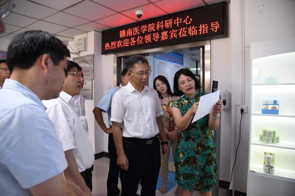 认真听取汇报后,罗小云指出,近年来,赣南医学院的科研工作取得了良好成效,特别是赣南转化医学研究院建设,每次来都有新变化。他强调,要强化科研成果转化,进一步加强校企合作,完善利益联结机制,要取得经济效益、社会效益双丰收。赣南医学院要发挥主观能动性,尽快做好建设生物安全P3实验室、临床医学研究中心的计划,尽早达到所需的条件和要求,省委、省政府以及省直相关部门将予以全力支持。