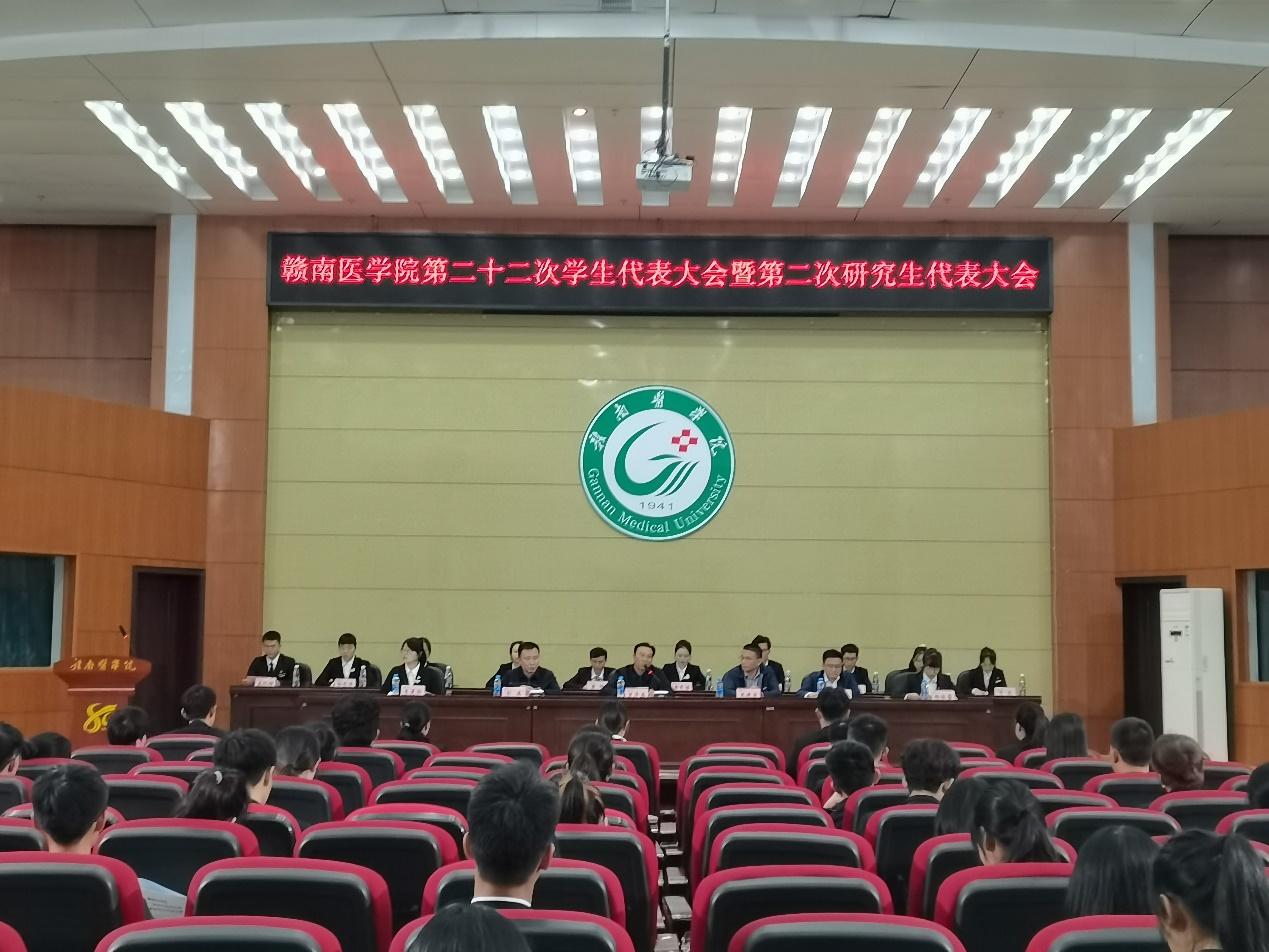 大会通过选举方式产生了赣南医学院第二十二届学生代表大会常任代表和学生会主席团成员,赣南医学院第二届研究生会主席团成员。