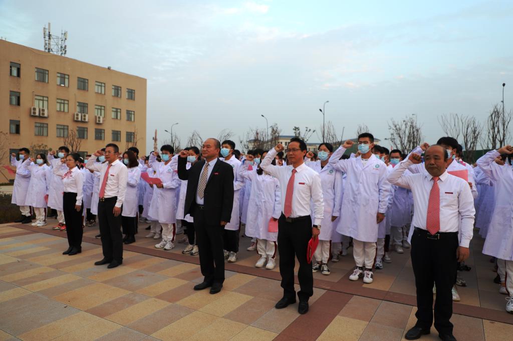 最后,全体学生身着白袍,举起右手紧握右拳,跟随基础医学院院长谢水祥一起庄严宣誓,白袍加身,使命传承,矢志誓言,铿锵有力,医学生誓言在赣医上空久久回荡。