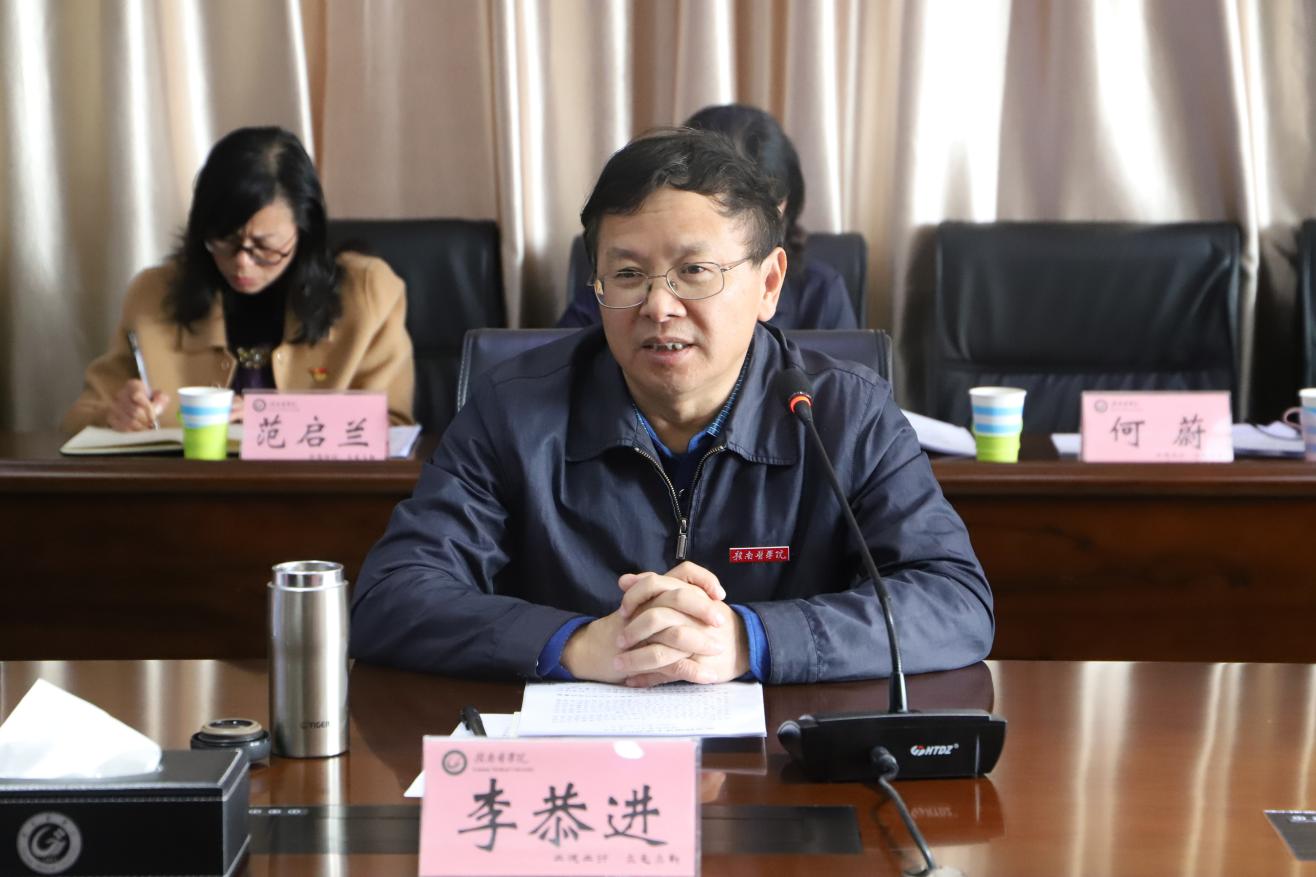 就省第十五次党代会的学习宣传贯彻,李恭进要求,要认真组织学习研讨。大会报告中“扎实推进重大创新平台攻坚行动,以高水平创新平台促进高质量科技创新”等内容与学校发展紧密相关,要深入组织学习研究,并结合实际统筹谋划、贯彻落实。要积极开展宣传宣讲。要结合学校实际,认真谋划好党代会精神的新闻宣传、集中宣讲、理论研究,创新手段方法,开展师生群众喜闻乐见的宣传宣讲活动,在全校营造浓厚的学习氛围。要结合学校实际贯彻落实。各部门(单位)要结合自身实际,结合学校“五大工程”建设和当前重点工作,按照省党代会的决策部署,研究具体贯彻措施,以务实的举措推动党代会精神转化为推动学校各项事业发展的强大动力。