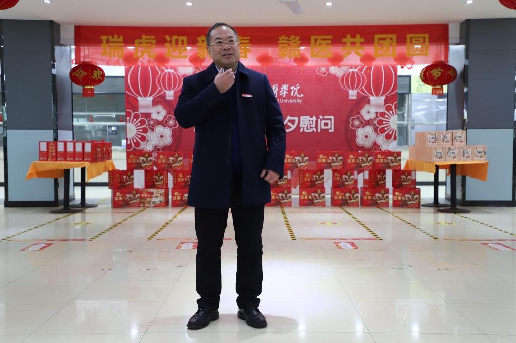 叶军明代表学校向因为家乡疫情防控、学校科研任务留校的同学们致以节日的问候与祝福,向为留校学生提供周到服务的各部门及教职工表示感谢。他指出,学校始终坚持以学生为中心,把学生的事情作为头等大事,寒假留校学生的学习生活情况一直牵动着学校领导、老师们的心。他希望留校学生遵守疫情防控要求,以积极乐观的心态看待家乡疫情,多与父母家人联系,做好总结、规划,合理安排假期学习生活,加强体育锻炼,积极开展科研与学习活动,在学校度过一个健康、快乐、难忘的寒假和春节。