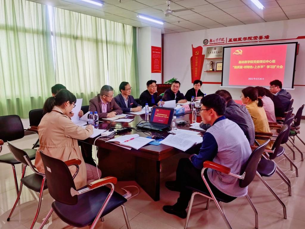 4月20日,基础医学院在黄金校区召开“提质量·创特色·上水平”党委理论中心组学习扩大会。学校党委副书记曾泽鑫到会指导并讲话。会议由该院党委书记颜剑主持。