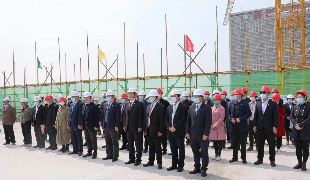 4月19日上午,随着主体顶层最后一车混凝土浇筑完成,学校一附院省级重大疫情防控救治基地项目顺利封顶。学校党委副书记、校长兼一附院党委书记张小康出席封顶仪式并致辞。