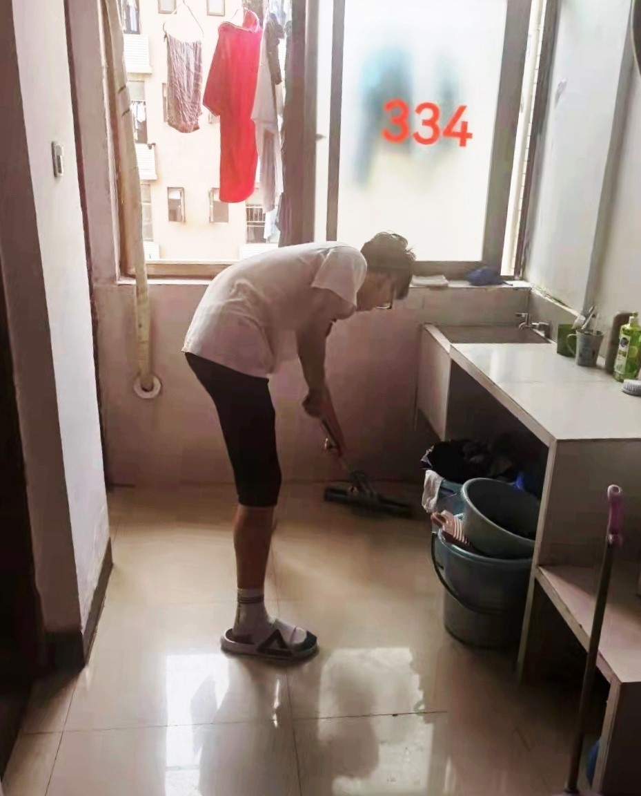 活动过程中,学生以寝室为单位,全员参加,有的扫地、拖地、有的清洗厕所和浴室,有的重点清理桌底、床脚、天花板等平常容易忽视的地方。整个过程学生劳动积极性高,干劲十足,尤其是看到宿舍清扫过后的变化,深刻体会到劳动的收获感。