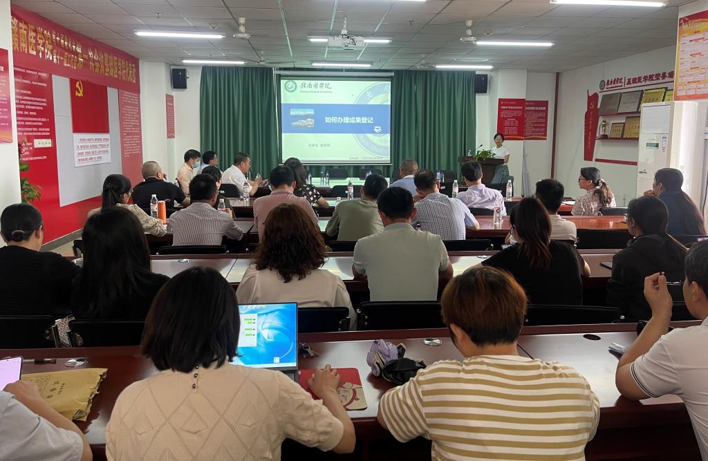 宣讲会上,唐思琪老师从成果登记的意义、条件、原则、所需材料、注意事项等给大家详细介绍了成果登记及科技奖申报的流程。王烈峰强调,要高度重视,严格按照申报要求,仔细研究,精心准备,认真梳理并全面展示学校科研成果。