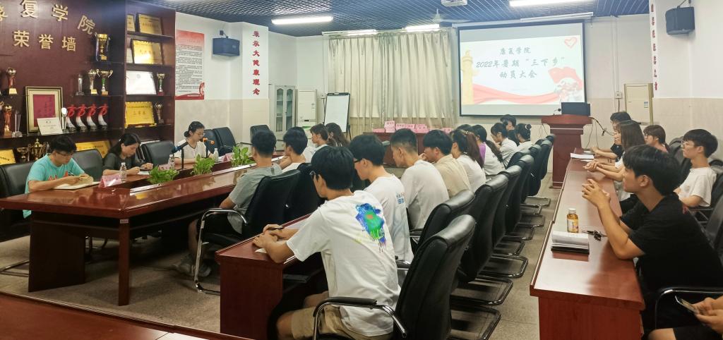6月24日晚,康复学院在黄金校区召开2022年暑期“三下乡”社会实践动员大会。该院党委副书记叶贞丽、学工办老师以及全体青年志愿者参加。