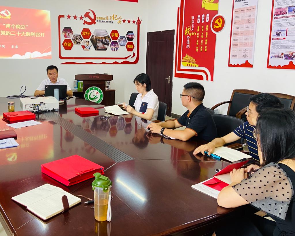 7月1日上午,药学院教工第六党支部在黄金校区开展“庆祝建党101周年,喜迎二十大 重温习近平总书记在庆祝中国共产党成立100周年大会上的重要讲话精神”主题党日暨“七一”专题党课活动。药学院党委书记彭磊,党委委员、副院长黄浩以普通党员身份参加活动。