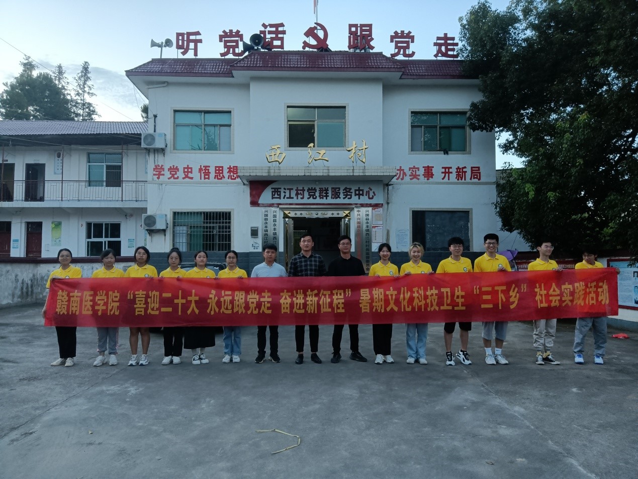 7月5日至10日,赣南医学院护理学院团委组织开展了前往兴国县西江村开展“传承红医精神,守护人民健康”的暑期“三下乡”文明实践活动,共有15名师生志愿者参与,投身乡村振兴战略任务,迎接党的二十大顺利召开。