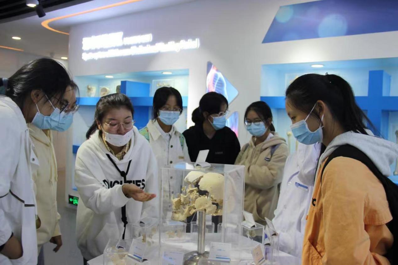 辅导员、解剖教研室专任教师作为讲解员,引导学生体验人体生命的魅力与神奇。入馆后,同学们认真聆听讲解,驻足观看各类标本。