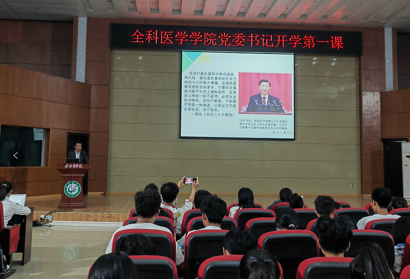 10月17日,全科医学学院党委书记张自翔在黄金校区学术报告厅给该院全院师生上了一堂精彩的思政课。