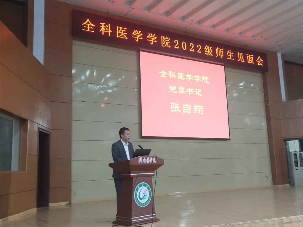 10月17日,全科医学学院在黄金校区举行2022级全体师生见面会。该院全体领导班子、全体教师、新生班主任以及全院学生300余人参加。该院党委委员、副院长周爱琴主持。