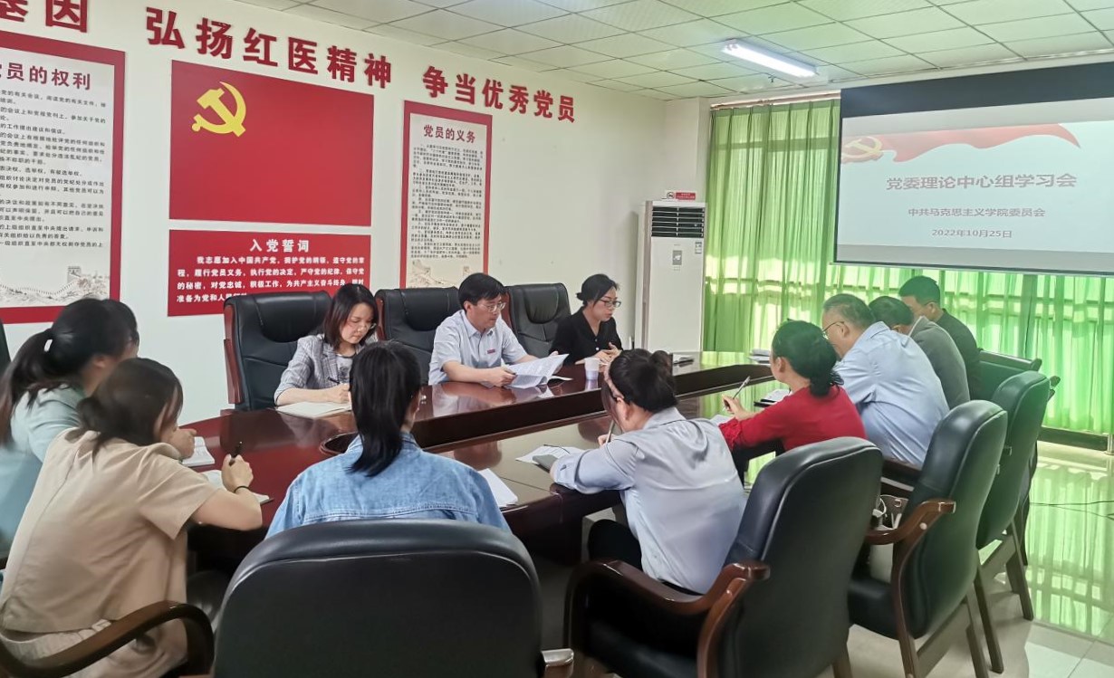 10月25日,马克思主义学院召开党委理论中心组学习扩大会议,传达学习党的二十大精神。学校党委委员、学院院长廖志平出席,学院党委书记连璐主持。党委副书记毛磊焱,学院各教研室、各科室负责人参会。