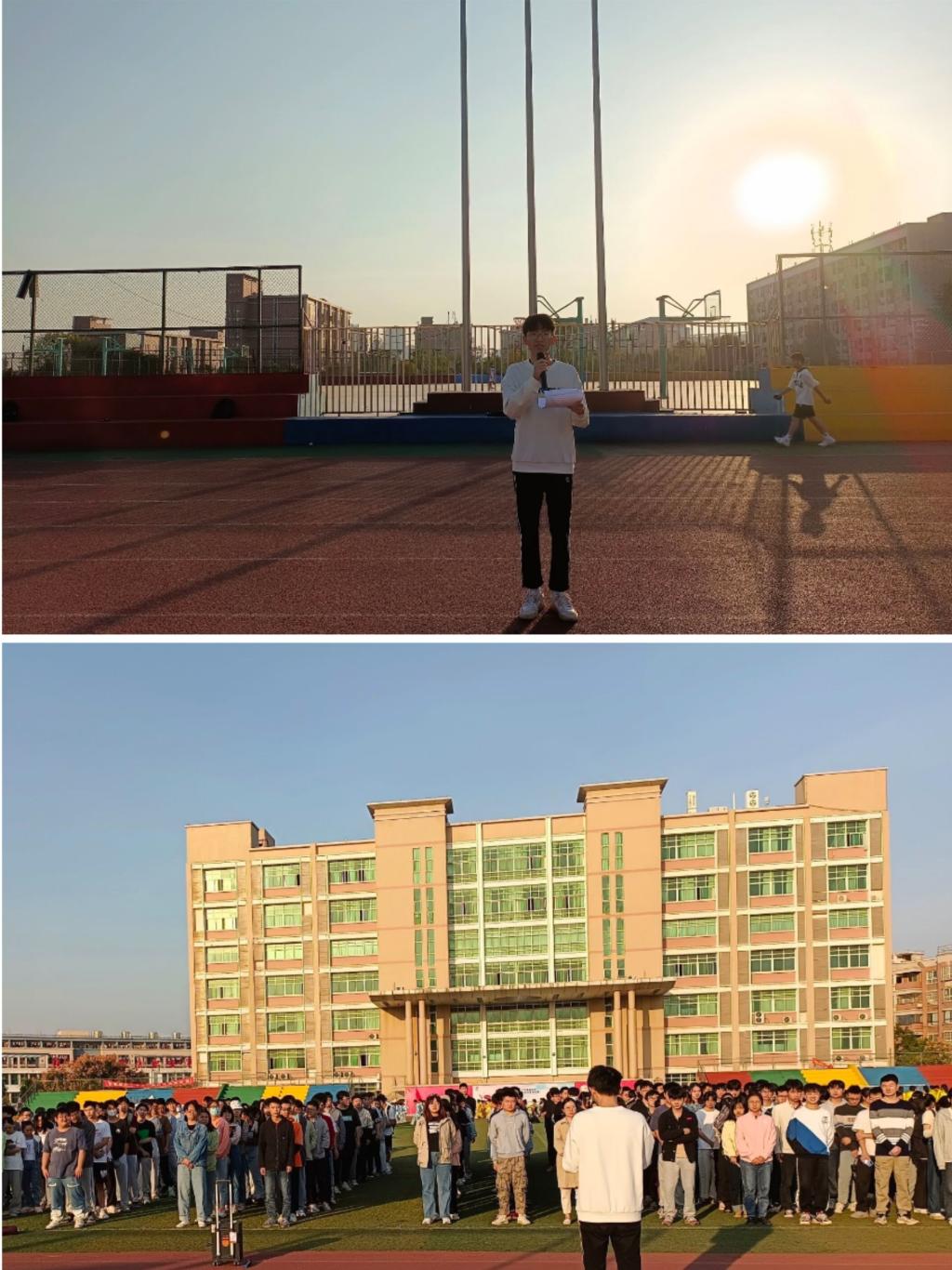 10月26日清晨,医学信息工程学院在黄金校区田径场升旗台下举行“国旗下讲话”暨晨会活动。学工办辅导员和2020级全体同学参加。