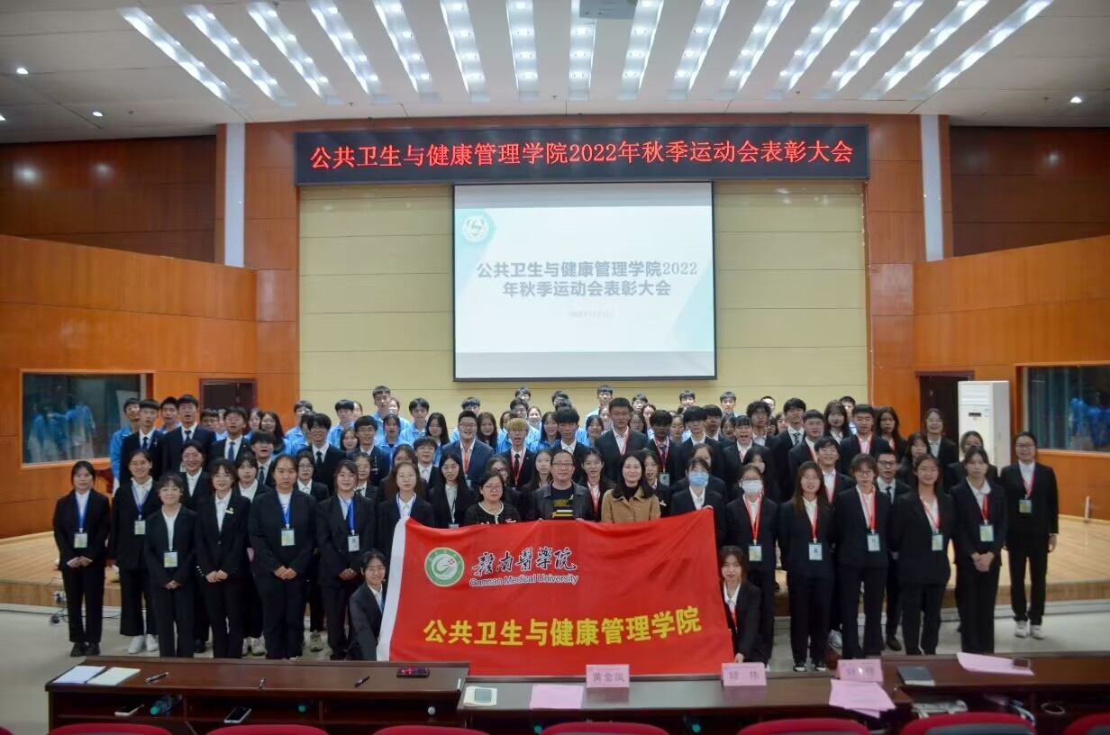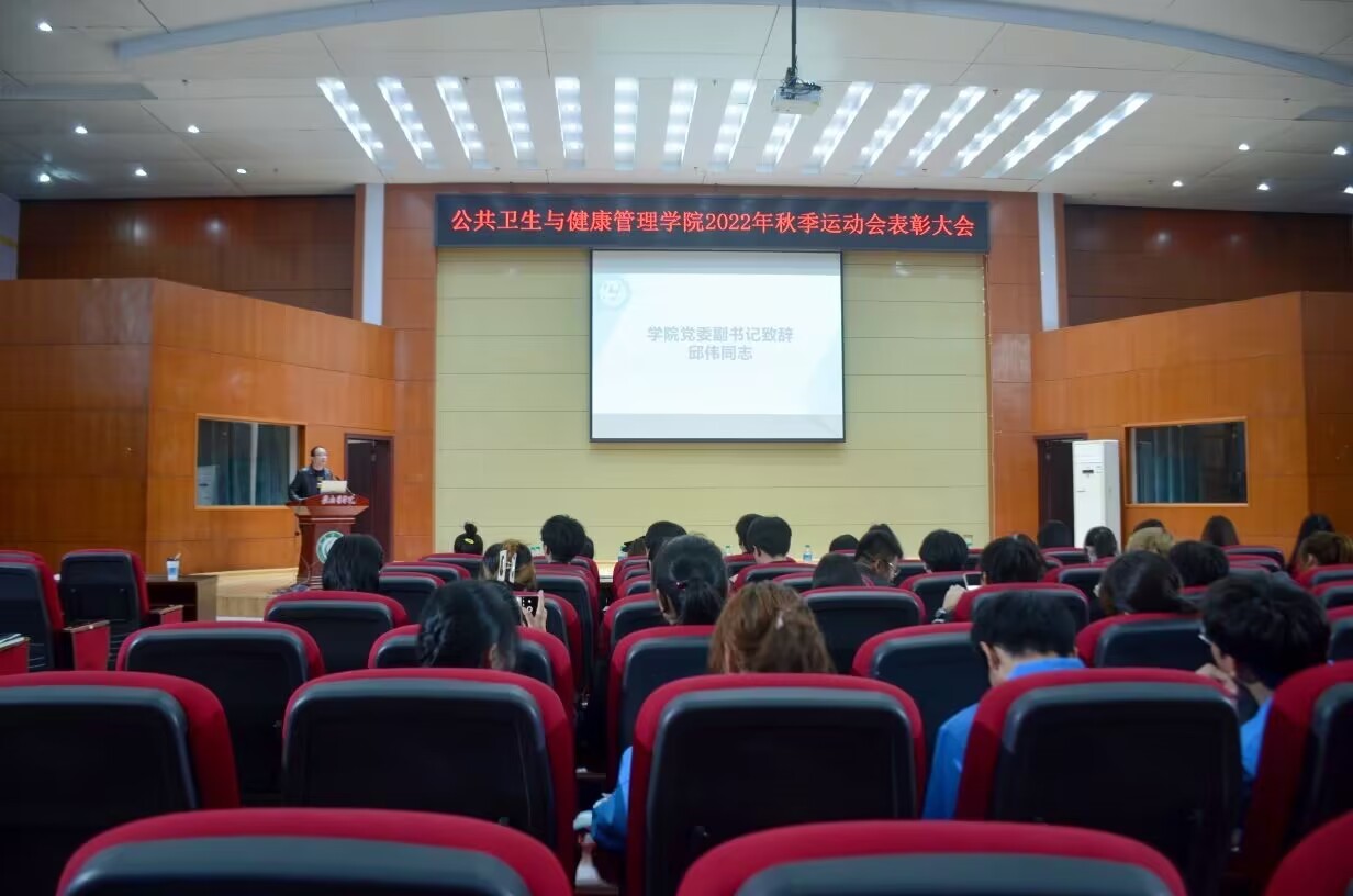 11月19日,公共卫生与健康管理学院在黄金校区举行了2022年秋季运动会表彰大会。该院党委副书记邱伟、学工办全体辅导员、学生会全体人员及运动会表彰人员150余人参加。