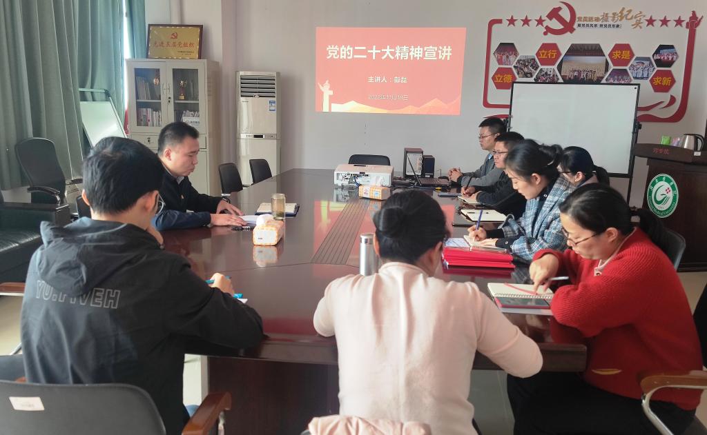 彭磊号召支部全体党员要把学习贯彻党的二十大精神作为首要政治任务,全面学习、全面把握、全面落实。要把准关键重点,全面用心“学”,在“消化”上下功夫;要坚持融会贯通,反复深入“思”,在“深化”上见真章;要注重学思并用,联系实际“行”,在“转化”上求实效。真正做到学思用贯通、知信行统一,努力在新时代新征程上展现新担当、实现新作为。