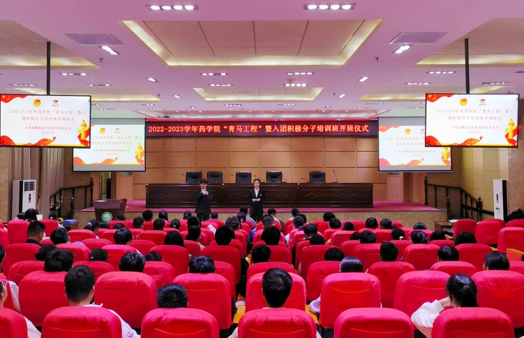 11月21日晚,药学院在黄金校区图书馆报告厅举办2022-2023学年“青马工程”暨入团积极分子培训班,40名青马学员及38名入团积极分子参加。