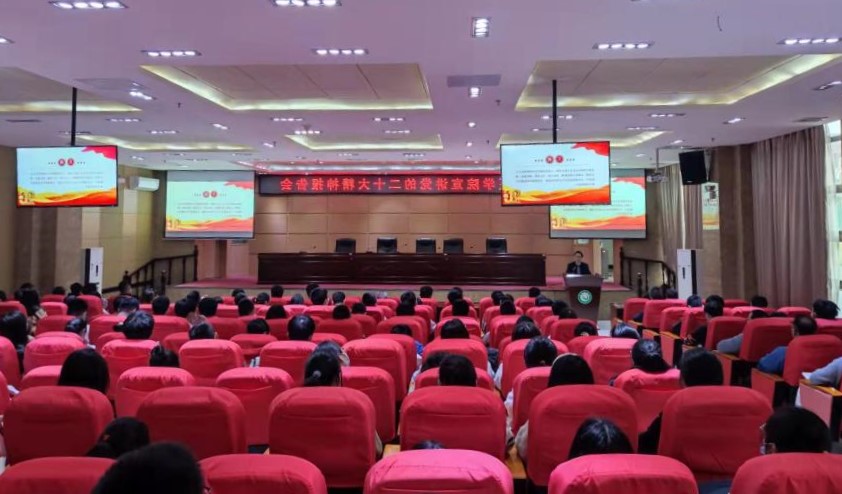 11月24日下午,基础医学院在图书馆学术报告厅召开党的二十大精神宣讲会,党委书记颜剑做宣讲报告,该院领导班子成员、师生代表150余人参加。