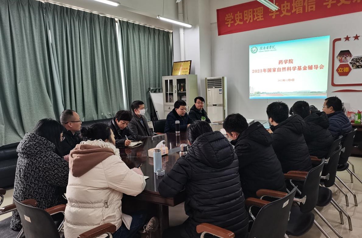 12月8日下午,药学院举办2023年国家自然科学基金申报辅导会,科研处副处长王烈峰莅临现场指导,该院副院长黄浩主持。