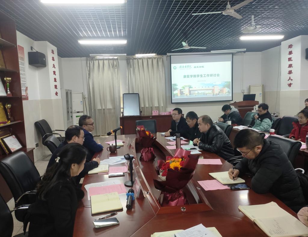 2月17日,康复学院在黄金校区召开2023年学生工作研讨会,学院党委书记曾新华、学院院长温优良以及学院全体辅导员、班主任参会,会议由学院党委副书记叶贞丽主持。