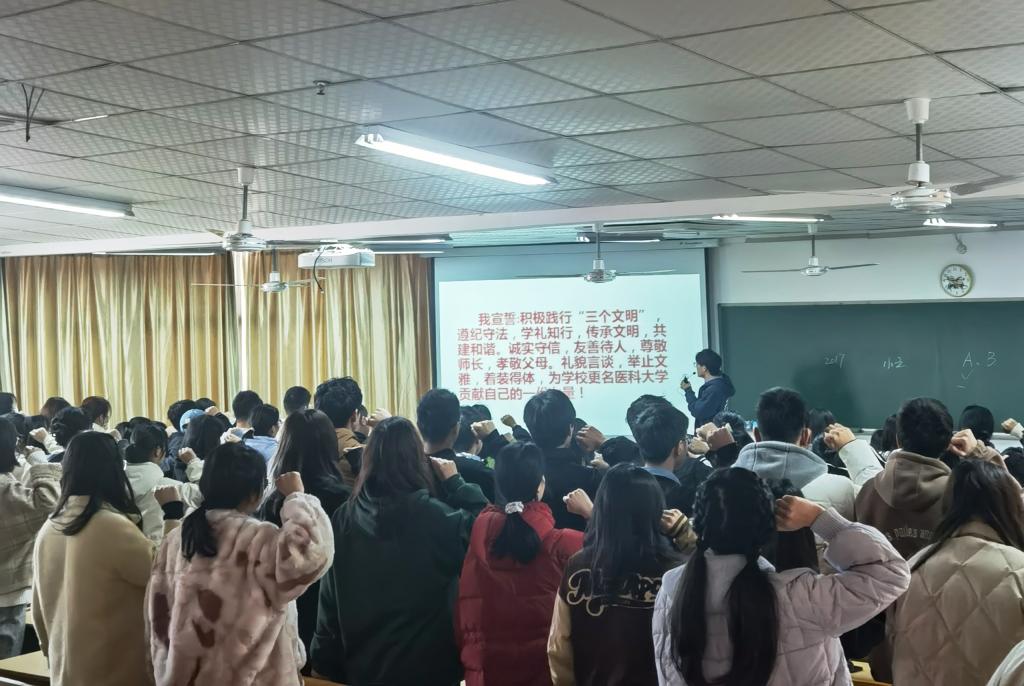 毛磊焱以“三个文明,你我同行”为主题作动员报告,介绍了学校的发展历程及更名大学工作的进展情况;对学校“三个文明”建设的历史渊源、推动举措和实际成效做了深透讲解;结合学院实际布置了近期学生相关工作。她号召全院学生统一思想、提升认识,进一步增强“我与赣医同发展、我与赣医共荣辱”的主人翁意识,以高度的历史责任感和昂扬的精气神切实投入到更大工作中来。