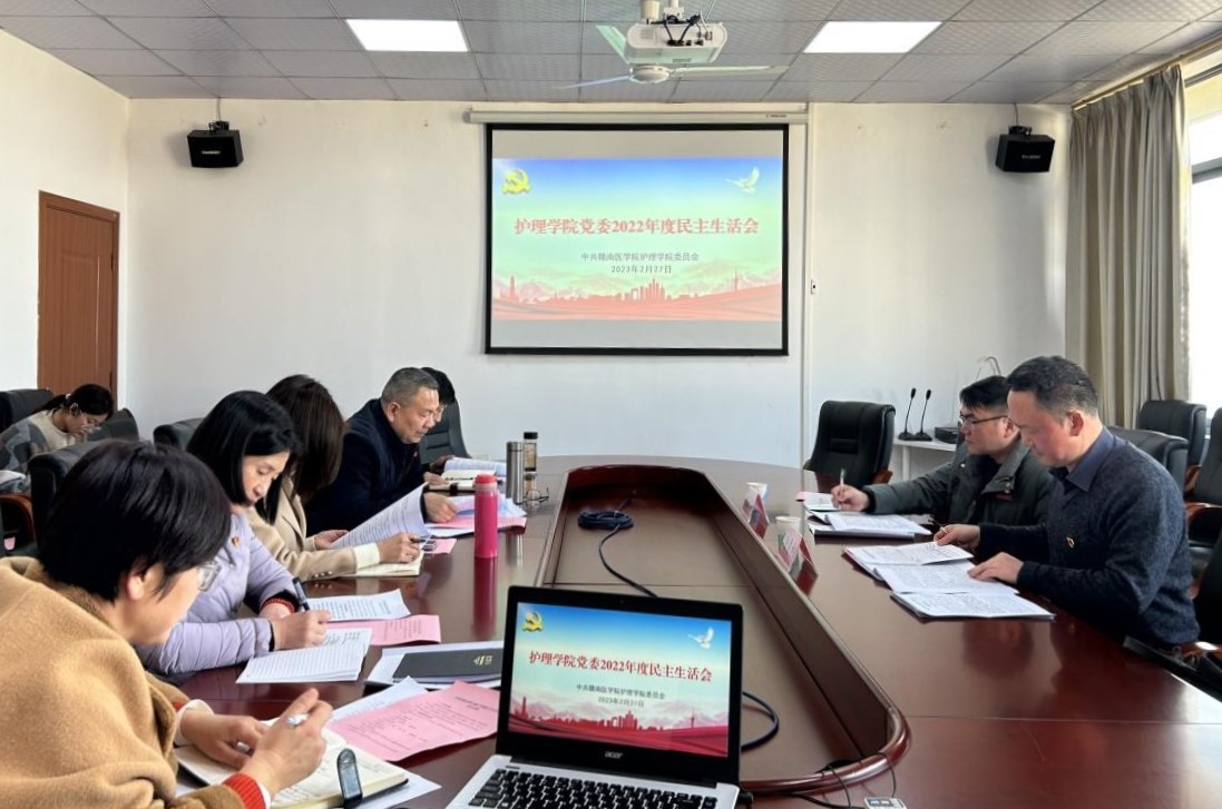 2月27日下午,护理学院党委召开2022年度民主生活会。党委教师工作部部长陈霖柏、图书馆副馆长曾泽华到会指导。该院党委全体领导班子成员出席,各科室负责同志列席。该院党委书记陈志远主持。