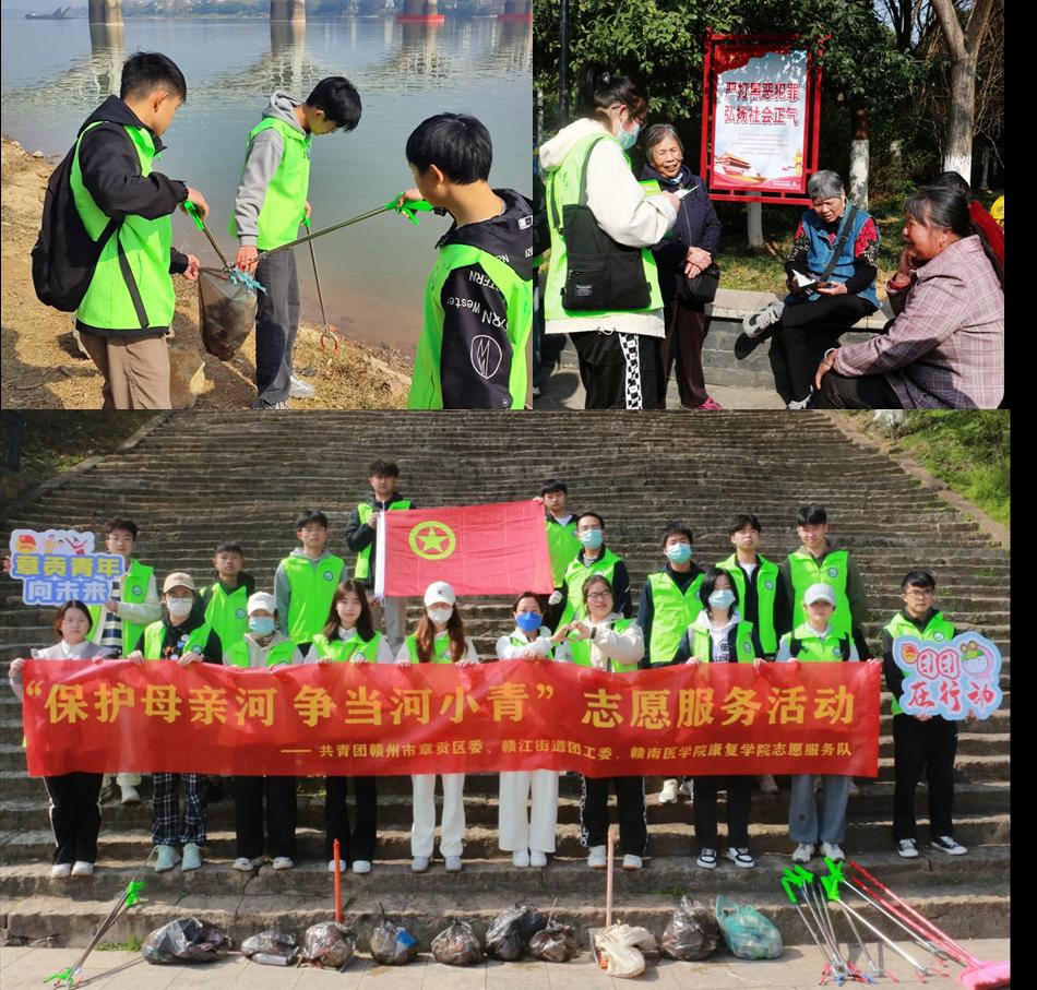 此外,10余名大学生志愿者前往赣州市东河公园开展了“保护母亲河,争当河小青”巡河志愿活动,对河畔附近的垃圾和杂物进行了清理,呼吁广大群众参与美丽家园建设,提高河湖水系治理成效,共同打造生态绿色、宜居宜业的“绿水青山”。
