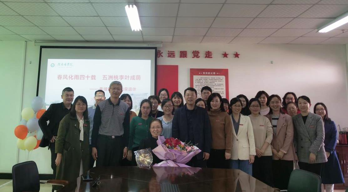 3月10日,人文社会科学学院在黄金校区为退休教职工焦培慧老师举行“春风化雨四十载 五洲桃李叶成荫”荣誉退休仪式。学院领导班子、荣退人员、全体教职工参加仪式。