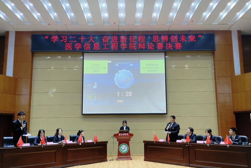 3月29日晚,医学信息工程学院在黄金校区举办主题为“学习党的二十大,奋进新征程,思辨创未来”辩论赛决赛。该院辅导员和200余名学生代表参加。