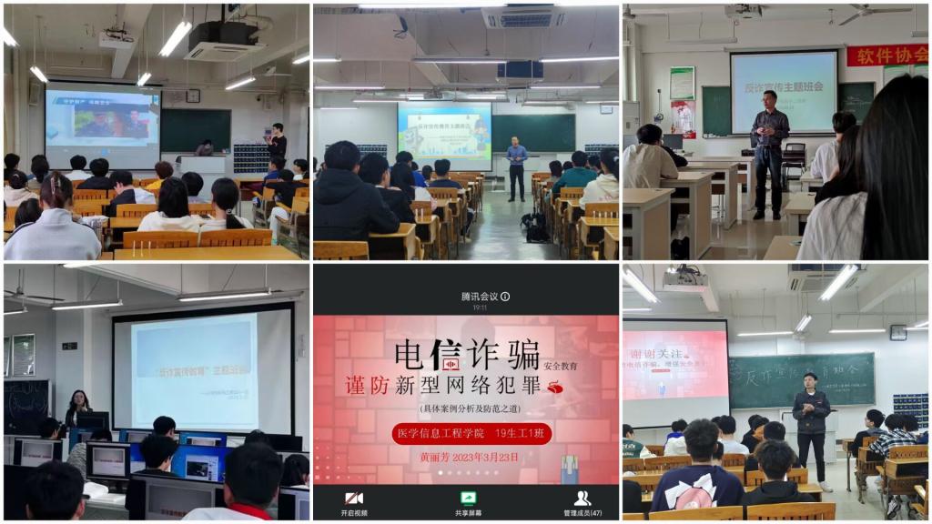 近日,电信网络诈骗案件频频发生,诈骗手段花样百出,令人防不胜防。为切实保障学生财产安全,有效防范校园电信网络诈骗案件发生,3月下旬以来,医学信息工程学院全覆盖在36个班级中开展反电信网络诈骗专题教育班会,各班班主任主持班会。