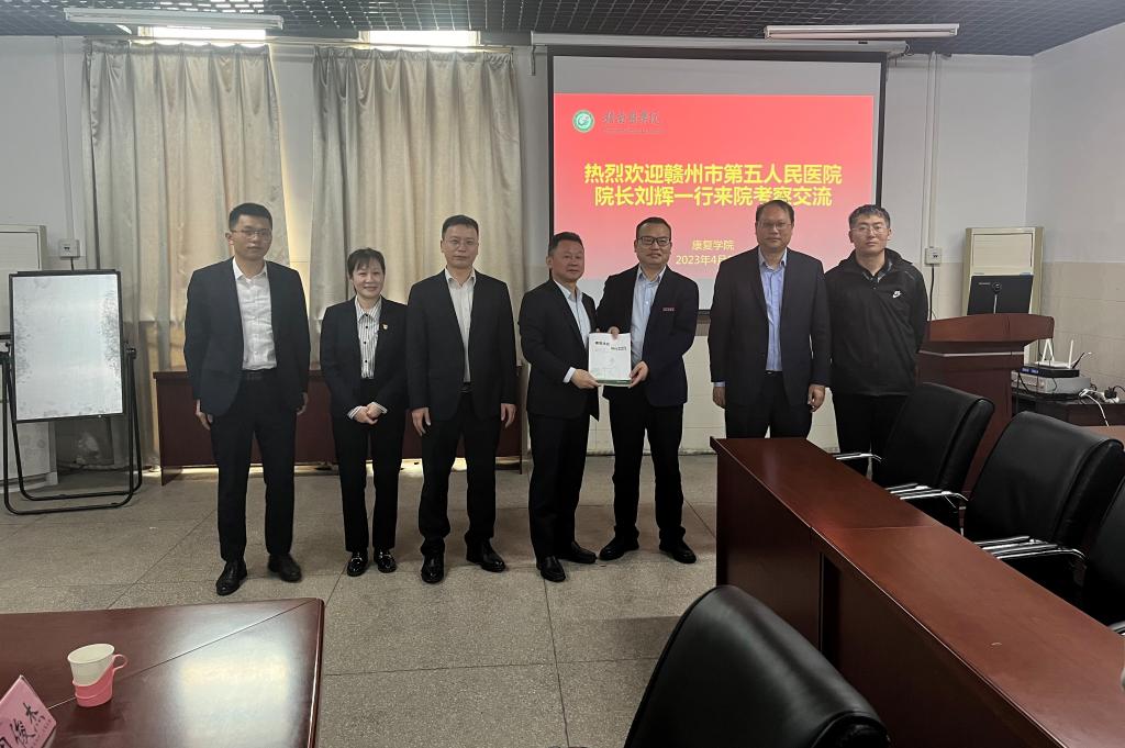 4月11日上午,康复学院积极开展对外交流活动,赣州市第五人民医院刘辉一行到访参观,学院领导、专业教师参会。