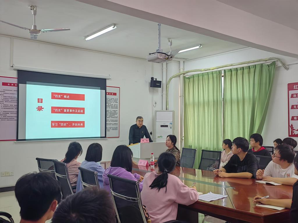 黄诚全面系统地从“四史概述”“四史重要事件及启迪”“学习四史,开创未来”三方面展开深入浅出的讲解,给同学们讲述了一堂内容丰富、精彩生动的党课。他鼓励同学们从“四史”学习中汲取力量,向楷模学习,坚定理想信念,赓续红色血脉。