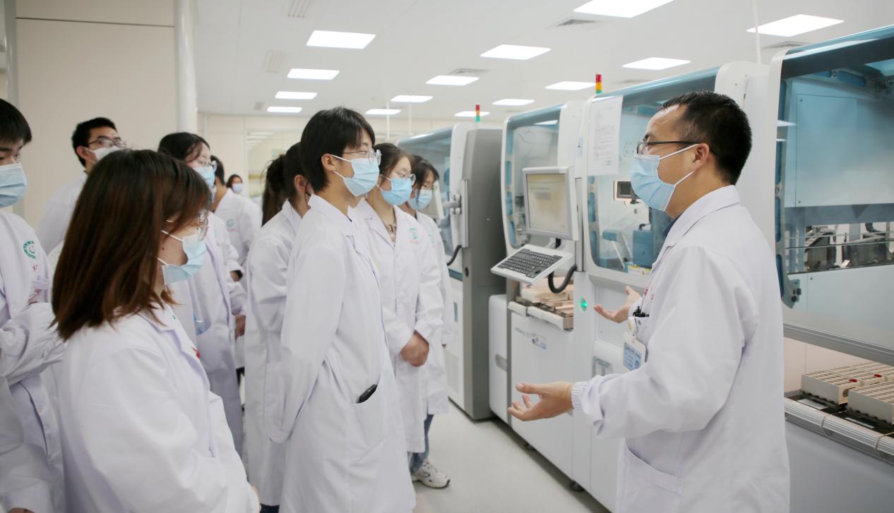 4月13日,第一临床医学院医学检验技术专业235名学生前往一附院开展“早临床”实践活动,近距离了解医院检验科室,提前感知未来的医疗工作环境。