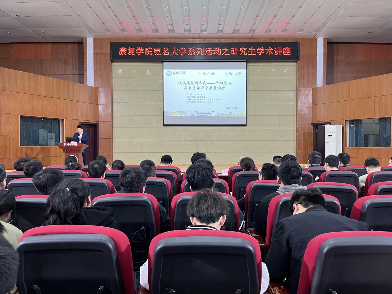 4月25日晚,康复学院在黄金校区多功能报告厅举办更名大学系列活动之研究生学术讲座,该院院长温优良主持,部分研究生导师及其科研团队,该院全体教师,在校研究生和本科生代表360余人参加。