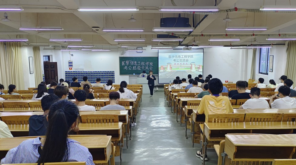 5月16日晚,医学信息工程学院举办了公务员考试经验交流会,帮助学生提高公务员备考能力和考试水平,该院辅导员、班主任、学生代表100余人参加。