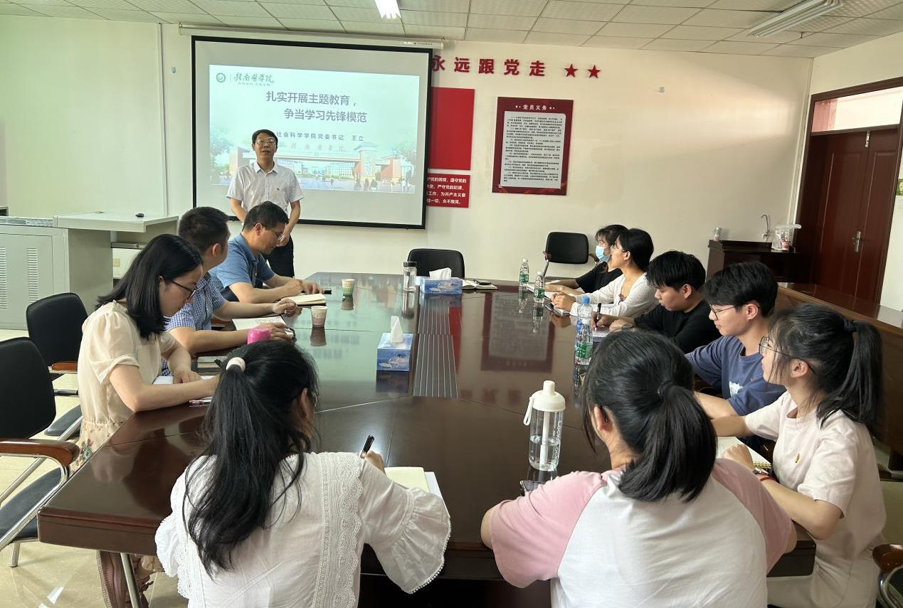 5月30日,人文社科院党委书记王立讲授题为《扎实开展主题教育 争当学习先锋模范》主题教育专题党课,该院教工第一党支部党员、学生党员代表到场聆听。