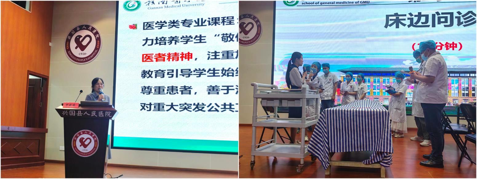 全科医学教学团队就进一步提升附属兴国医院(兴国县人民医院)教学质量开展了师资培训。国家课程思政名师罗晓婷结合自身丰富的教学经验就课程思政建设目标及教学实施进行了深入辅导,全科医学技能教研室副主任陈路军就如何开展见习授课进行了现场示范。培训结束后,参训教师就培训内容进行了现场交流与探讨,一问一答,反响热烈。