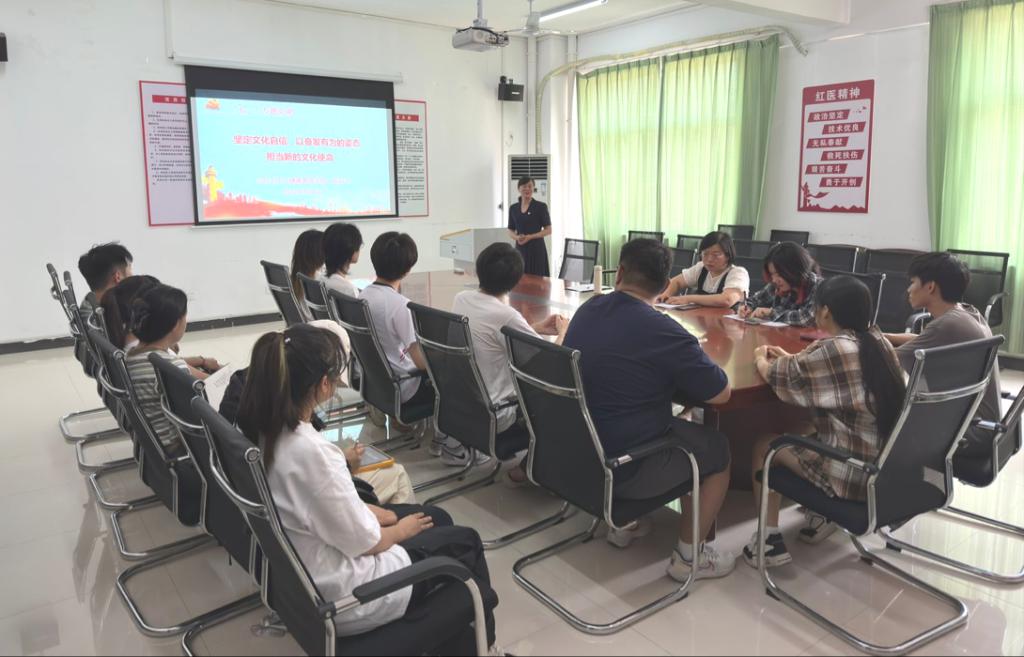 7月4日,公共卫生与健康管理学院党委书记范启兰以《坚定文化自信、以奋发有为的姿态担当新的文化使命》为题,给该院学生第一党支部党员、入党积极分子讲授了一堂生动而深刻的“七一”专题党课。