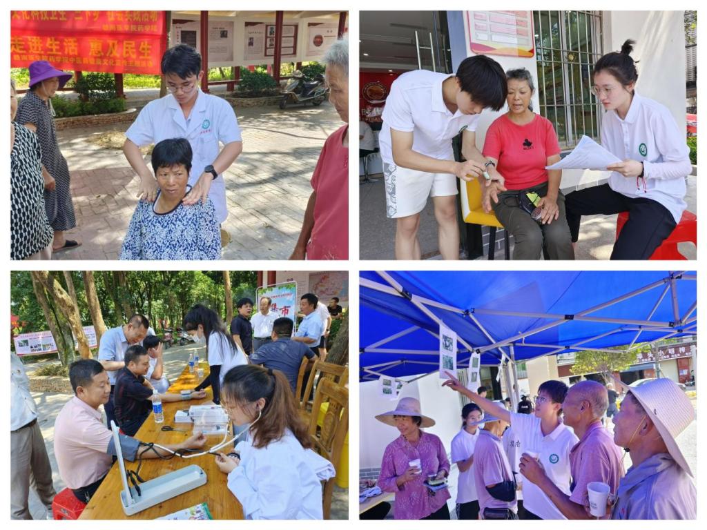 在埠头乡文明实践站和垓上村文化广场上,服务队的队员为居民群众免费测量血压、血糖,提供健康咨询以及中医传统疗法(推拿、艾灸、刮痧、穴位贴等)体验,发放健康知识手册、中药香包香囊和防暑降温用品(藿香正气水、清凉油等)。此外,队员们还根据自主收集的民间配方,熬煮凉茶供村民品尝。活动现场,气氛热烈,人头攒动,前来咨询和体验的群众络绎不绝。