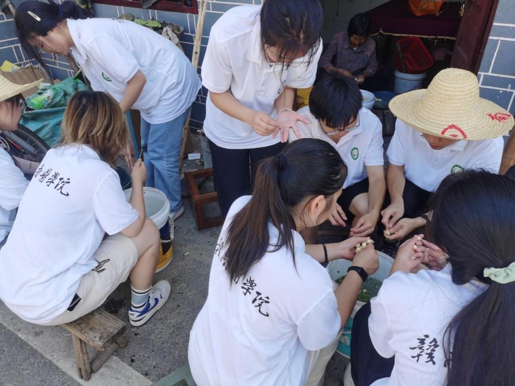 7月16日,正值白莲收获季节,实践团成员兵分两路深入了解丹溪村的风土人情,体悟劳动之美。丹溪村是著名的白莲之乡,莲子的采摘是丹溪村主要劳动之一,在村干部的带领下,第一组的志愿者四五成群围坐在一桶桶莲子边和村民一起剥莲皮、摘莲心。一上午的全心投入不仅获得了丰收的喜悦,而且体会到劳动的不易和坚持的重要性。 第二组志愿者在村干部带领下,来到百香果园里进行了洒水除草的劳动实践。彻底清除了果园田里所有大大小小盘根错节的杂草,野草;在节约水资源的前提下给果园洒水加湿。活动中,大家充分发扬了青年志愿者"能吃苦、肯奉献"的精神,将热血与汗水付诸实践,体验到了劳动的魅力,感受到了收获的快乐,以实际行动展现出时代青年的责任与担当。