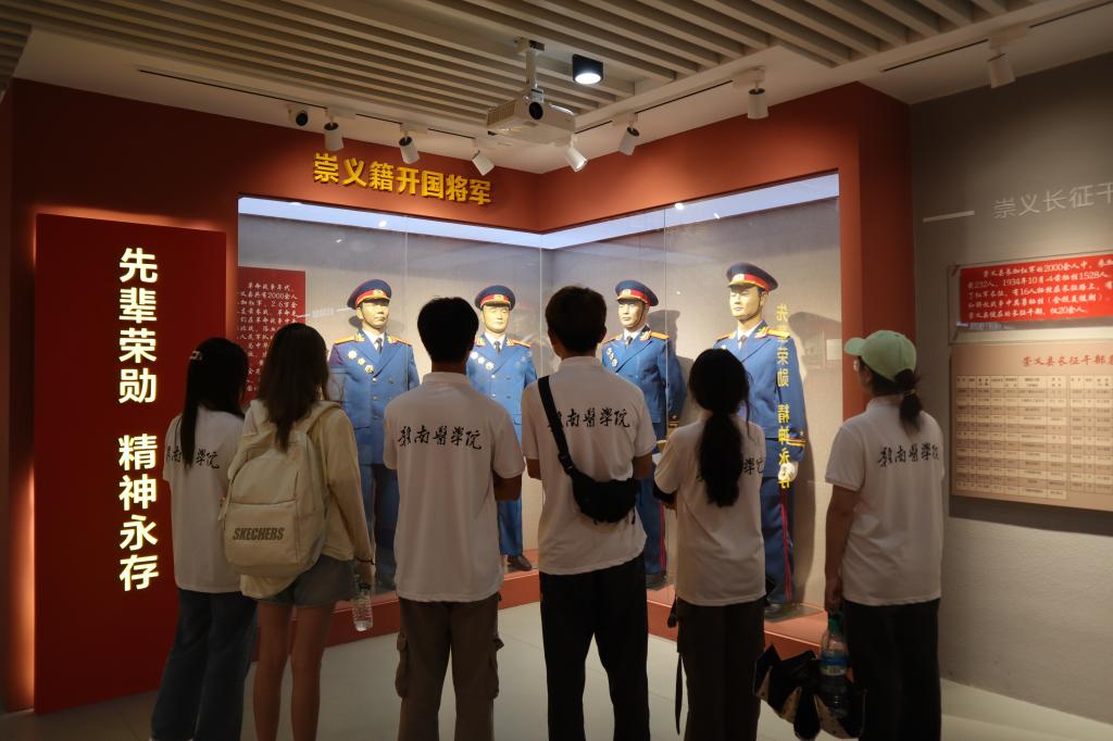 在崇义县博物馆,实践队参观了赣南三整暨崇义革命历史陈列馆。在展馆中,队员们认真聆听崇义籍开国将军的故事,向革命先辈们致以最崇高的敬意,感悟革命先辈们的英勇顽强和大无畏精神,从英雄模范身上汲取精神力量。队员们来到王阳明史迹陈列展厅,了解王阳明的生平事迹,学习立德修身、立业济世的精神标识和行为准则,体悟阳明文化和智慧。