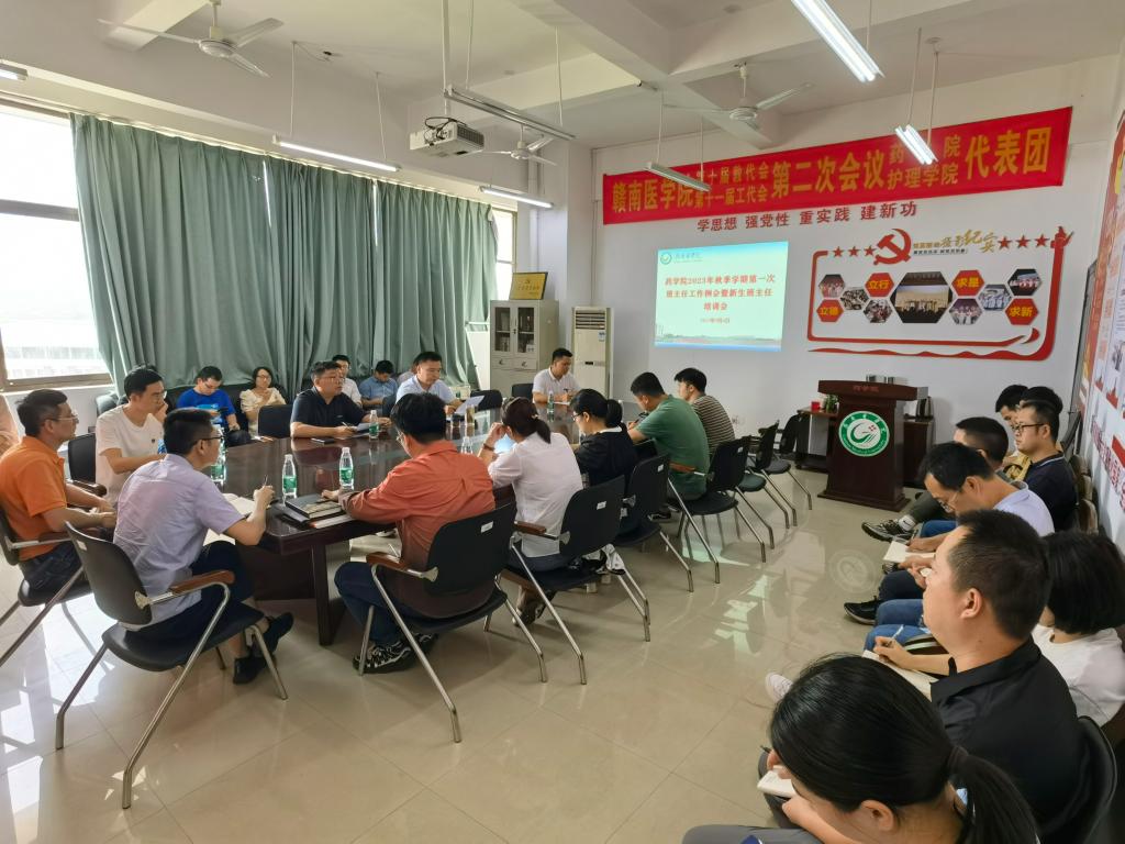 9月4日,药学院召开2023年秋季学期第一次班主任工作会议暨2023级新生班主任培训会,该院党委书记彭磊、副院长黄浩、学工办辅导员及全体班主任参加。