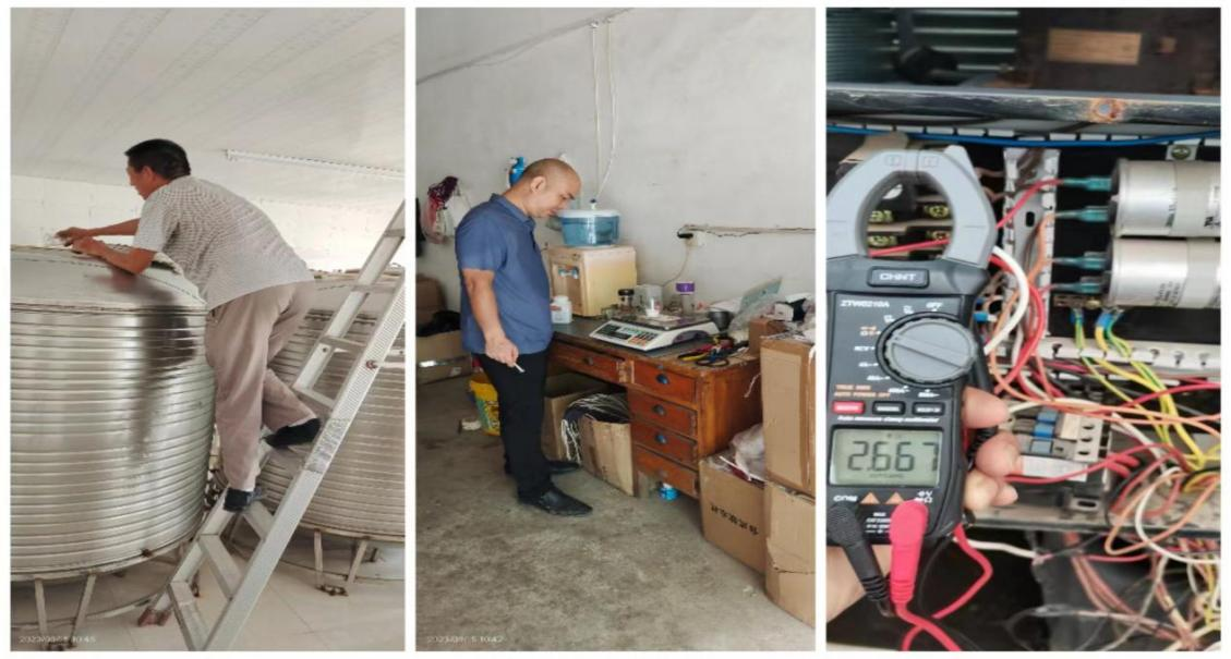 酷暑盛夏、持续高温,为确保学校热供和直饮水正常供应,后勤直饮水热供中心工作人员24小时值守,多次对学校热供设备和直饮水线路进行检修,及时消除故障隐患。在开学前开展热水直饮水管道及设备检修、集中供水、自备井水质监测及对蓄水池进行清洗消毒,确保师生返校正常供应热水和直饮水,为师生安全健康保驾护航。
