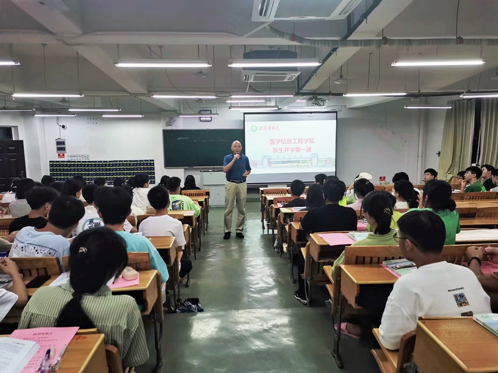9月15日晚,医学信息工程学院领导班子分别在黄金校区为该院2023级全体新生上“开学第一课”。该院学工办辅导员、新生班主任、2023级全体新生参加。