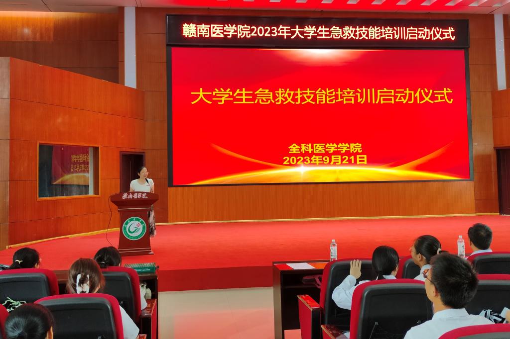 9月21日上午,全科医学学院在黄金校区举行大学生急救技能培训启动暨授旗仪式。该院领导班子成员、教师代表、以及2022级全体学生共计200余人参加。仪式由该院党委副书记、院长罗晓婷主持。