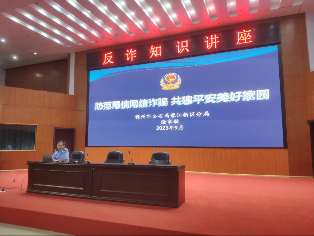 9月27日晚上19点,赣州市公安局蓉江公安分局反诈中心三级警督淦家敏与农业银行赣州市支行饶泽芳经理在黄金校区行政楼一楼多功能厅联合举办了“防范电信网络诈骗 共建美好校园”反诈知识讲座,此次讲座全校师生约400余人参加。