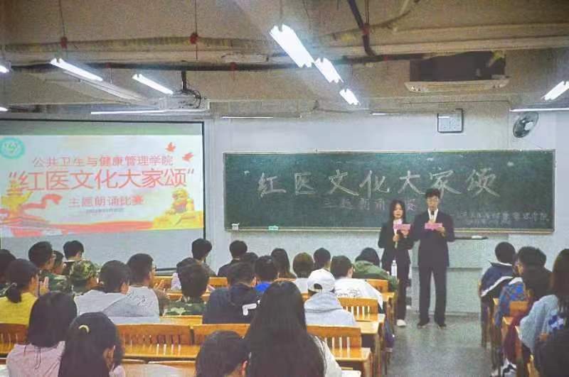 10月24日,公共卫生与健康管理学院在黄金校区举办“红医文化大家颂”主题朗诵比赛,该院学工办辅导员及2023级学生150余人参加。