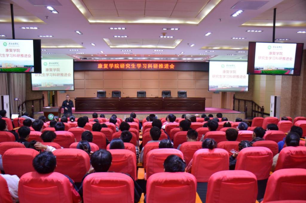 11月8日,康复学院在黄金校区图书馆报告厅召开研究生学习科研推进会。该院党政领导班子成员、全体研究生导师、班主任及全体在校研究生共同参与。