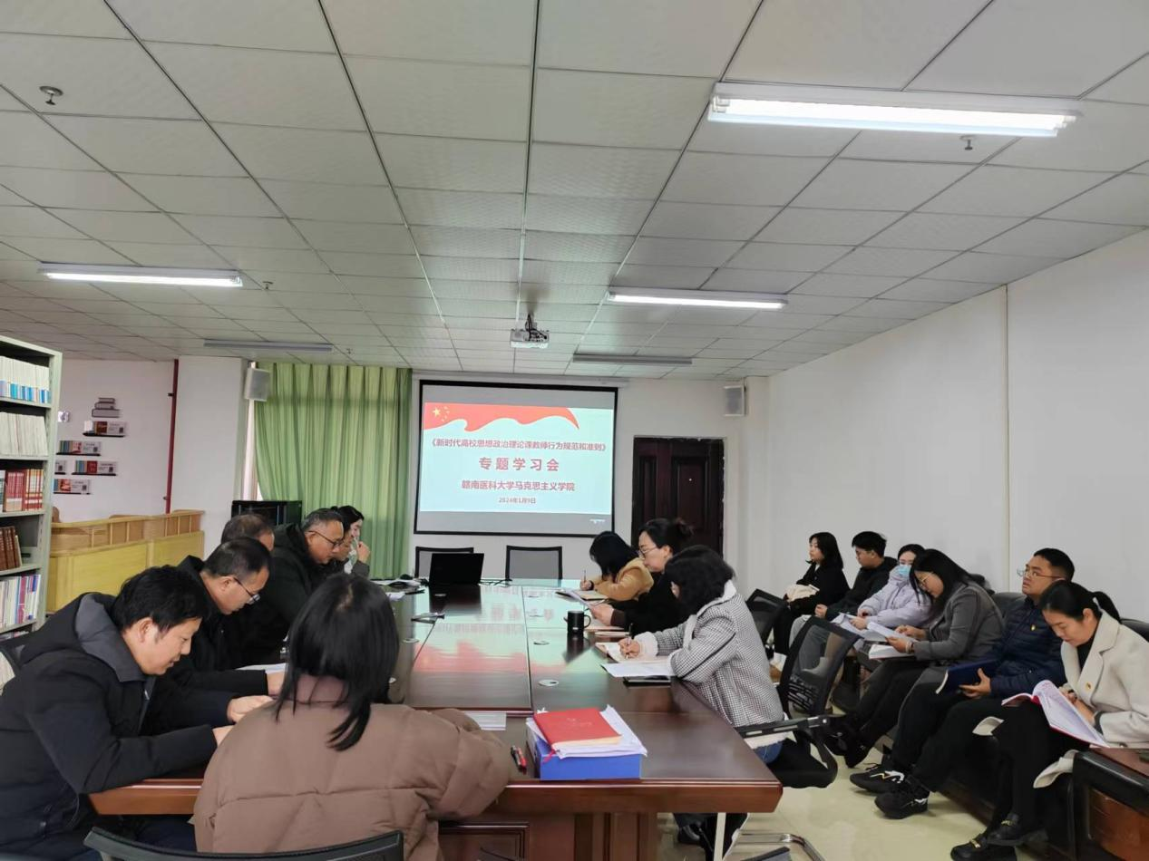 1月9日,马克思主义学院组织学院全体思政课教师参加教育部印发的《新时代高校思想政治理论课教师行为规范和准则》(以下简称《行为规范和准则》)专题学习会,学院领导班子参加会议。