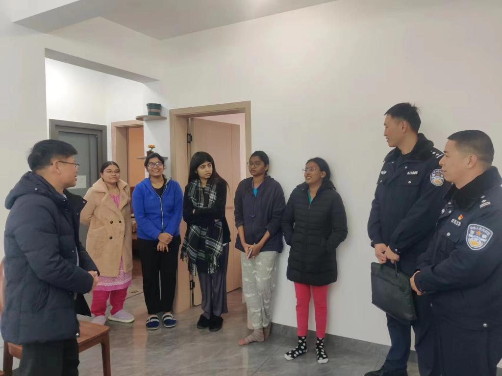 生命安全高于天,为了提高我校校外居住实习留学生的安全意识,确保留学生的寒假人身安全。1月30日,国际教育学院联合赣州市公安局经开区分局出入境管理部门和蟠龙派出所,对我校在经开区居住的27名实习留学生开展了安全隐患的排查和走访工作,三部门联合保障校外居住留学生的安全。此次活动由国际教育学院副院长钟富有带领。